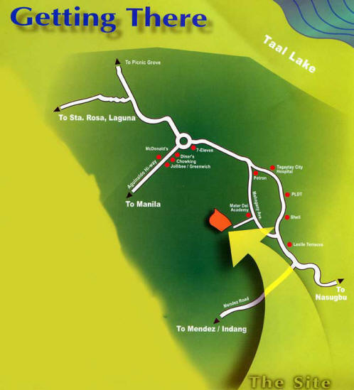 Pueblo del Sol is strategically located at the heart of Tagaytay City. It is near Sky Ranch, Taal Vista Hotel, Bag of Beans, Antoni's Ayala Malss Serin, Summit Ridge, Olivarez College Tagaytay, City College of Tagaytay, Mater Dei Academy, Tagaytay Medical Center, Mahogany Market, Lourdes Church and Pink Sisters
